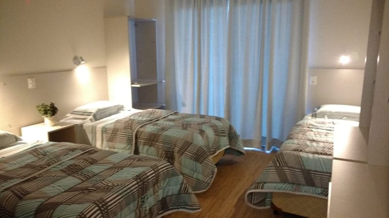 Apartamento com três camas de solteiro, banheiro privativo espaçoso, box blindex, ducha com aquecimento solar e água da fonte natural e filtrada, wi-fi livre, piso de cerâmica.