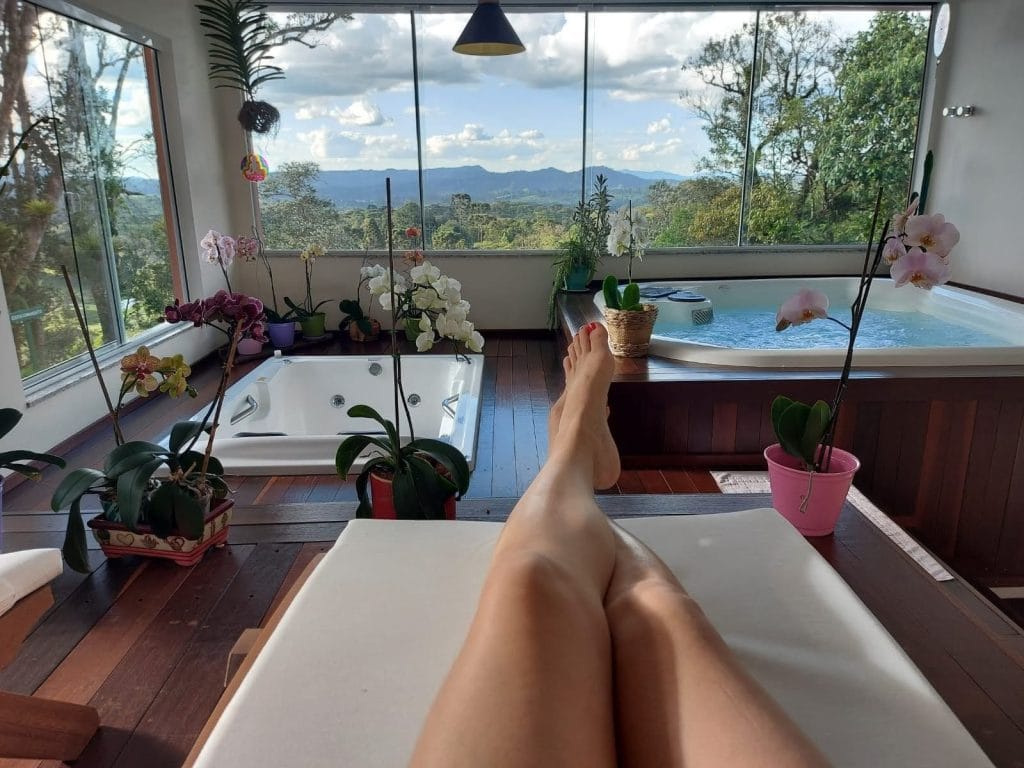 Além de ter acesso às trilhas para uma caminhada ecológica, varandas e decks para meditar e contemplar a natureza, com wi-fi gratuito, e distante de qualquer barulho da cidade.